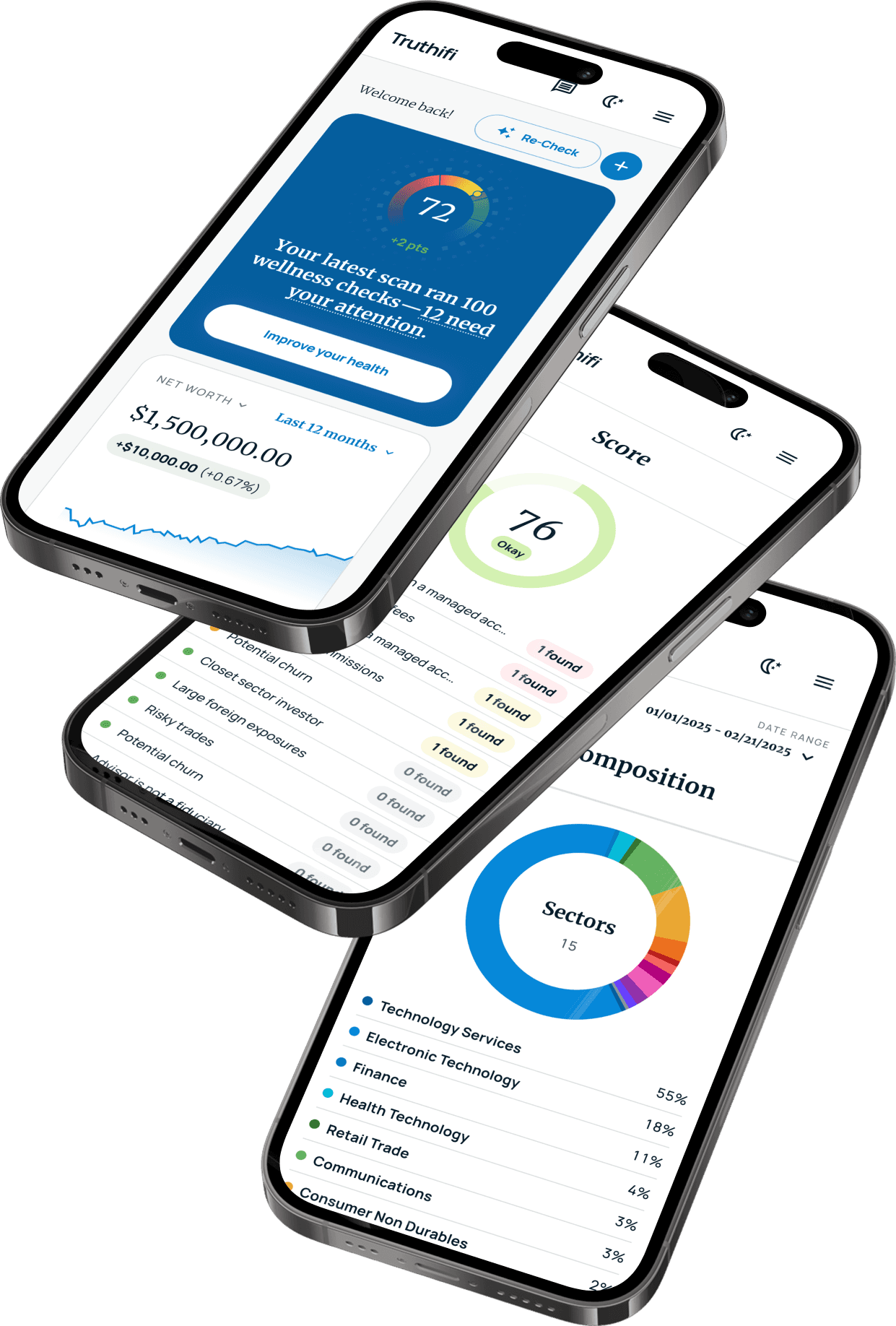 Truthifi quietly scans for fees, risk, drift, and odd activity every night—so you don’t have to babysit dashboards, or build your own spreadsheets.