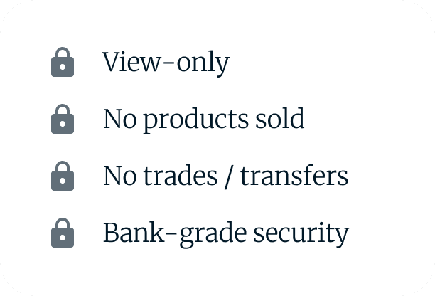 We can’t move money or place trades, and we don’t sell investments—just clear findings that support long-term financial wellbeing.